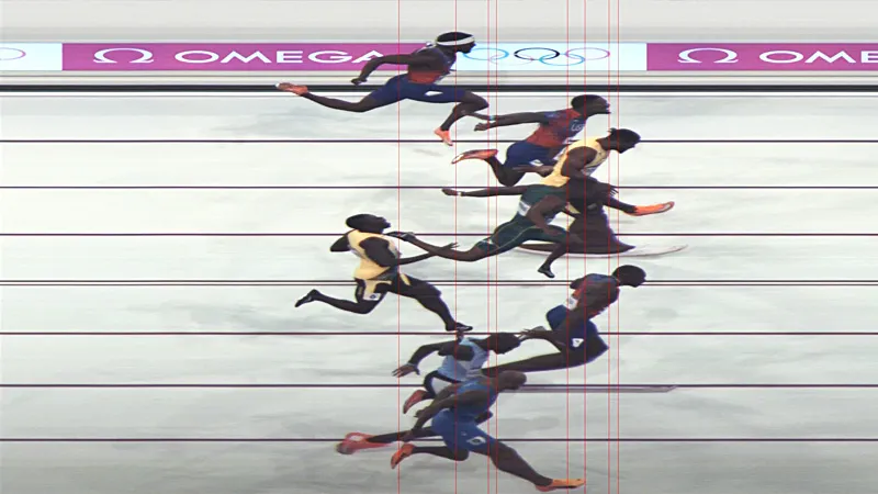 This is really cool. It's a photo from the finish line camera used at the Olympics to